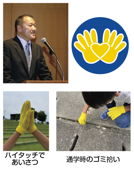 あいさつ運動で、地域の皆さまとふれあうハイタッチ!