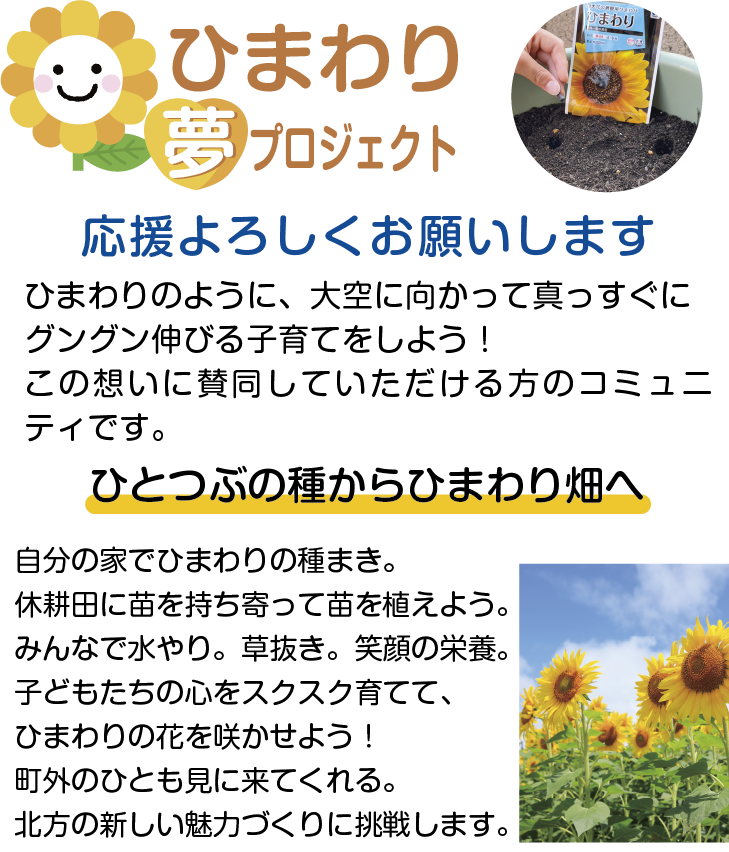 PTA会長のとき、伸ばした手が「ひまわり」に見えるように
